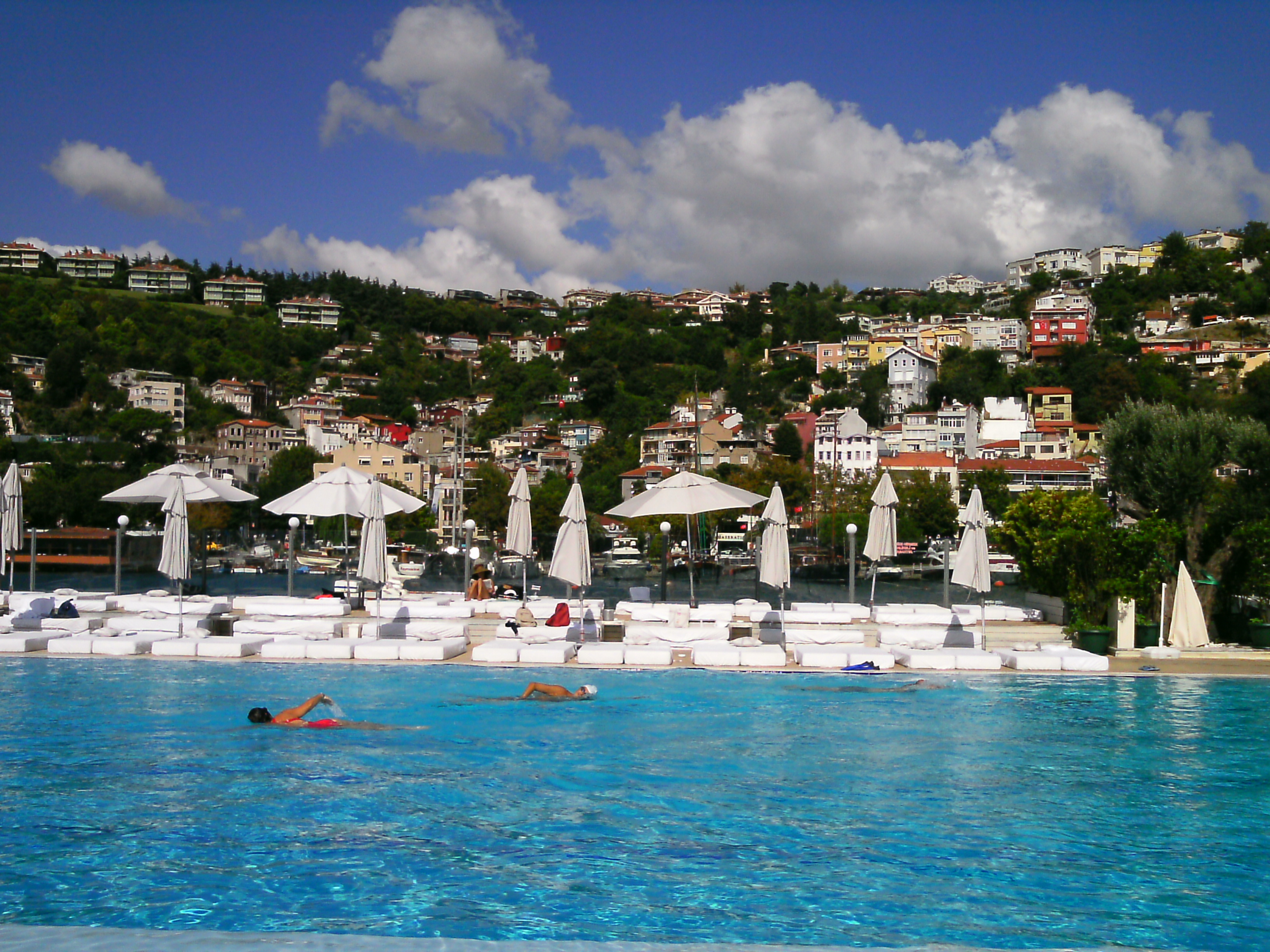 Depuis la piscine on a une belle vue sur les quartiers de la rive européenne du Bosphore, où l’urbanisation récente a créée un lieu de vie agréable, valonné et plutôt boisé, avec des maisons basses, dépassant rarement trois étages .