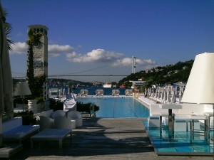 Mais l’eau du détroit, une fois filtrée et traitée, alimente la piscine du SuAda Club, (littéralement SuAda veut dire « île d’eau ») une petite île située à la hauteur de Kuruçesme, quartier résidentiel sur le Bosphore en amont du vieux centre-ville d’Istanbul.