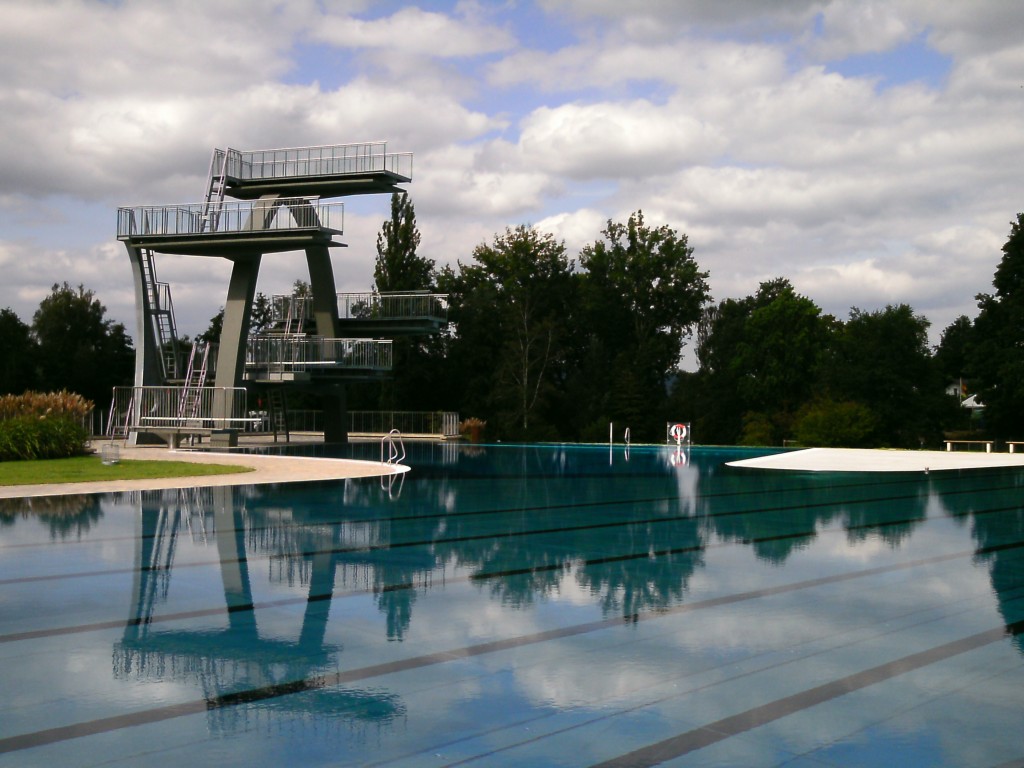Mais le summum, c’est le bassin de plongée, contigu avec le bassin sportif, avec une tour digne des prochains jeux olympiques. Quelque chose me rappelle Leni Riefenstahl, mais bon, c’est peut-être parce que en Allemagne certains clichés s’imposent….