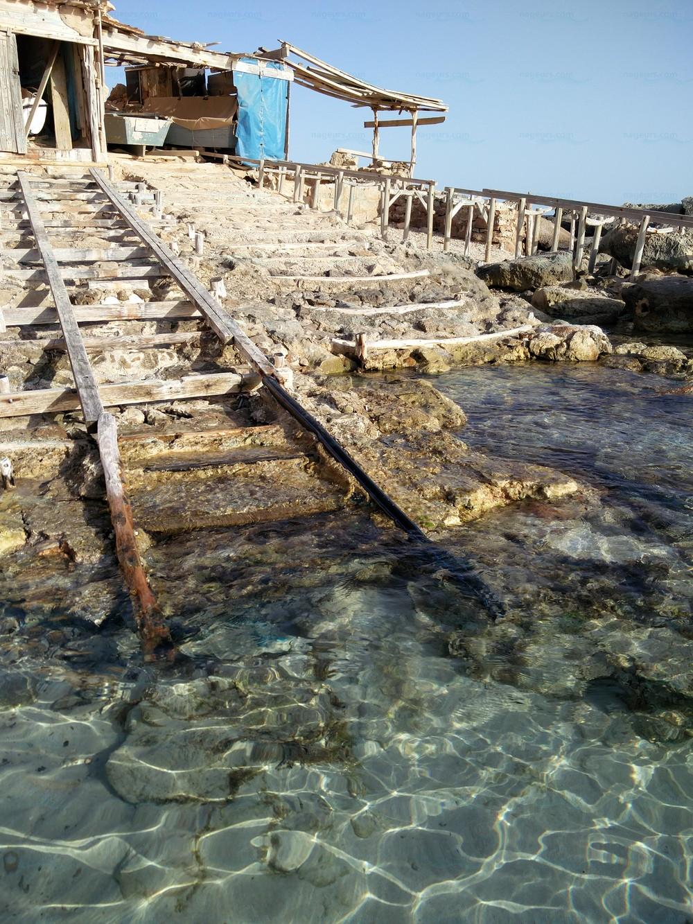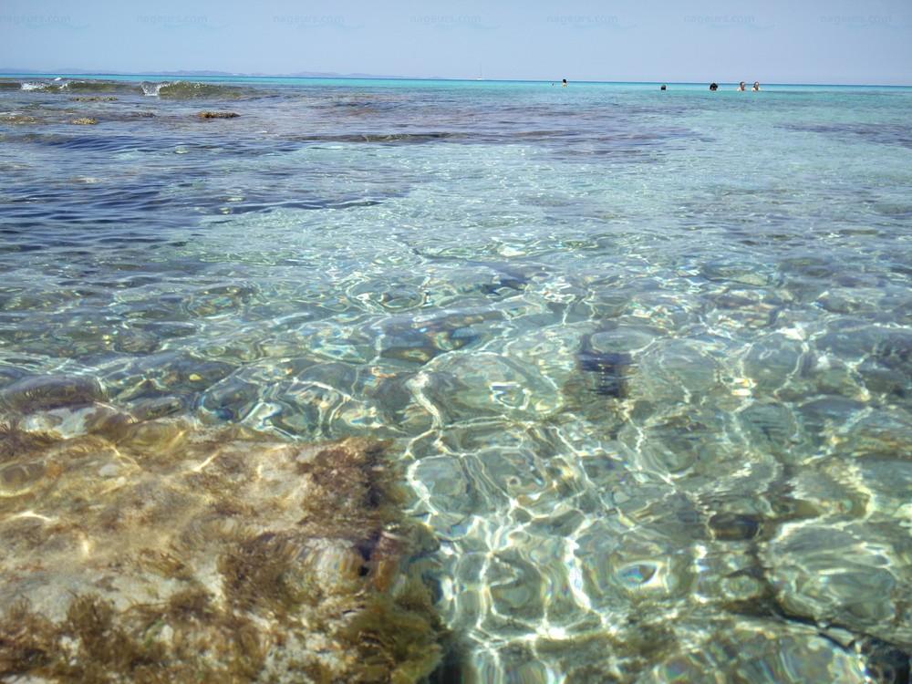 Eau comme un lac avec le soleil qui zebre le sable au fond de l'eau translucide.