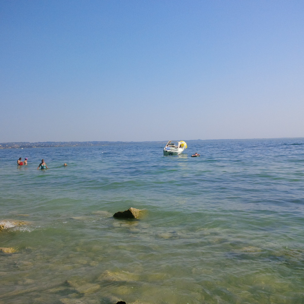 • Jeu 13 aout 2015 de 14h10 à 14h30, magnum75 a nagé 500 mètres : Escale à la Pointe San Vigilio près de Garde. Beaucoup de bateaux amarrés et eau pas très très claire,