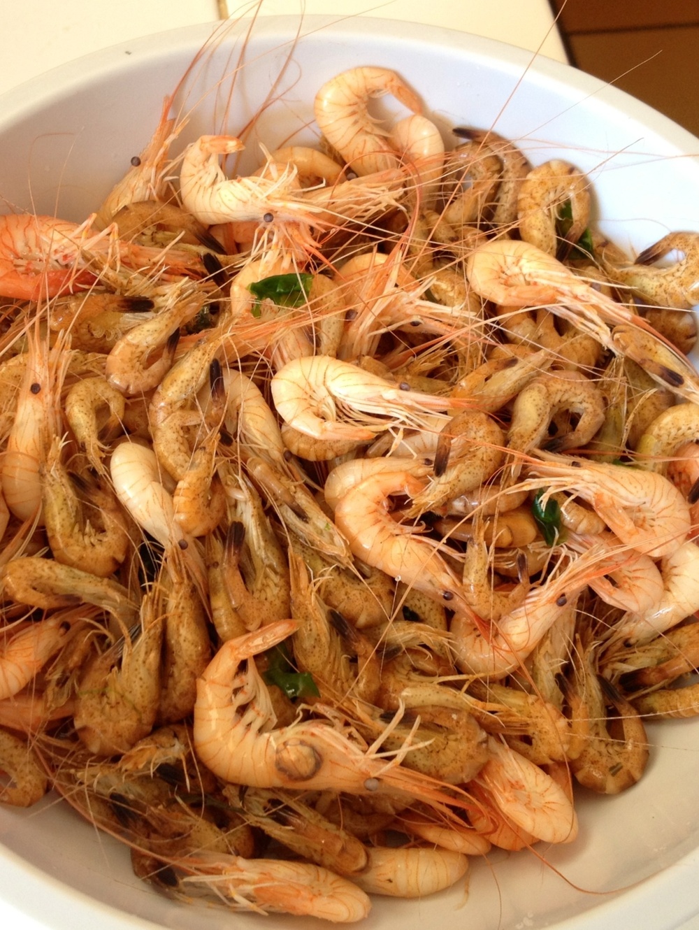 A marée basse, la pèche à la crevette.