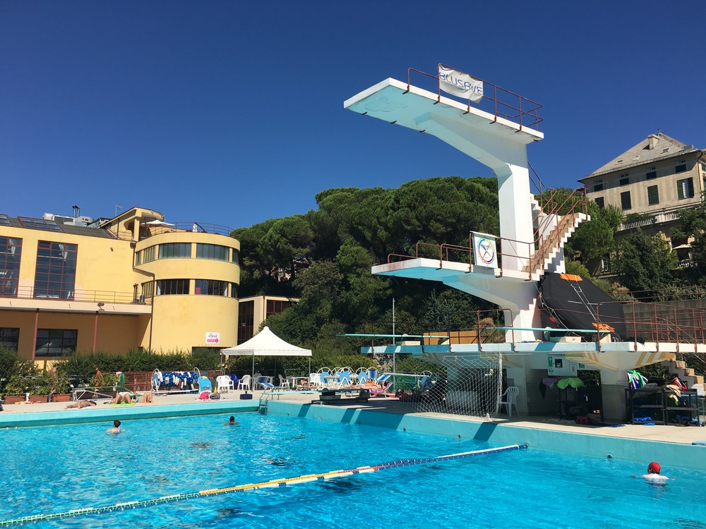 • Mar 23 aout 2016 de 11h30 à 12h30, magnum75 a nagé 3000 mètres : Énorme complexe avec, en extérieur, une 25x33m, une 50x25m et une 25x15m (pour les enfants), et une 33x25m en intérieur. Et tout cela en plein cœur de Gênes.