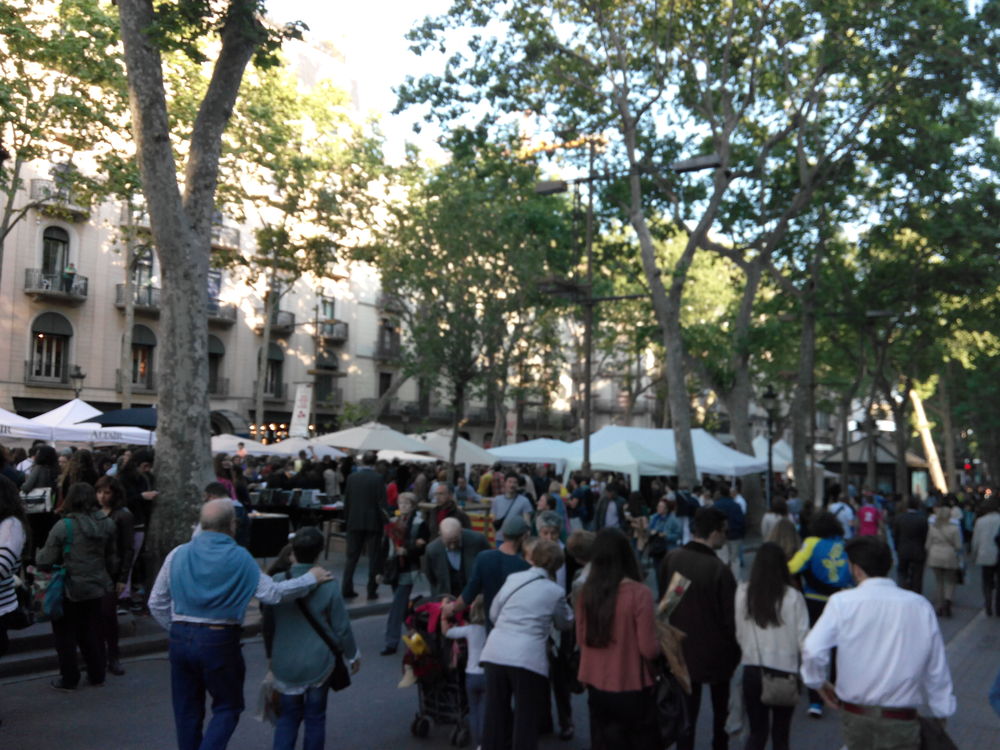 Dans les rues de la vieille ville de Barcelone c'était l'effervescence, des stands de livres et de roses à chaque coins de rues presque noire de monde. Dans le métro et dans la rue chacun avaient une où plusieurs rose avec un ruban catalan.