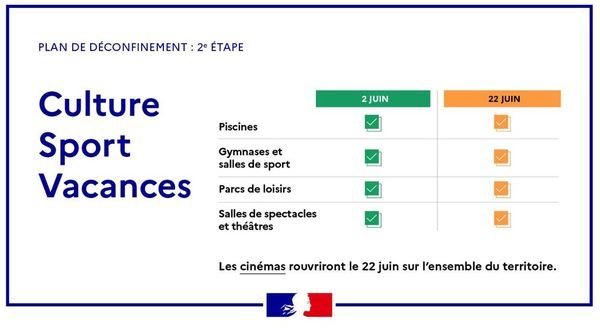 Certaines structures ont repris le 8 juin, d'autres reouvrent le 15 juin. D'autres le 22 juin prochain. Bref, sur mon département et ma région c'est partagé.