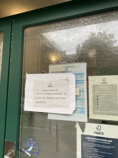 Piscine des amiraux fermée ce jour 28 septembre 2020