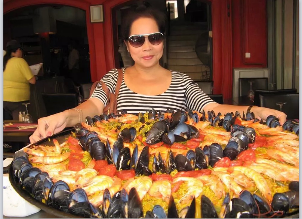 Je vais chercher une photo de la paella que j'ai fait une fois ici à Paris...