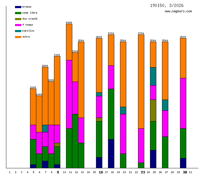 Avril 2026 : (11200 m)Mars 2026 : (48300 m)