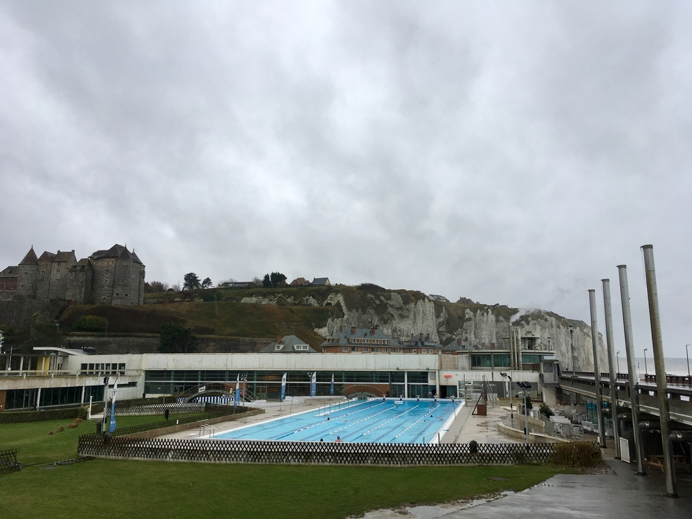 Nichés entre le château et la Manche, au pied des falaises, cela faisait un moment que je voulais y nager, aux bains de Dieppe !