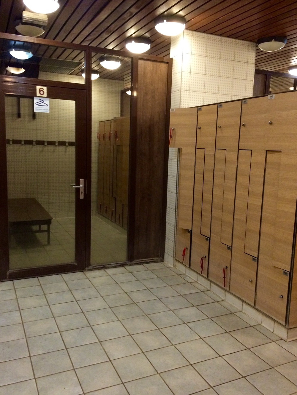 Vestiaires old school. J'adore. Clean. Normal c'était l'ouverture.