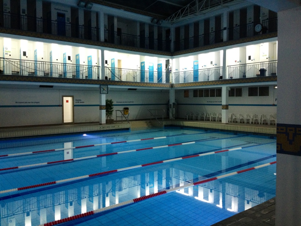Pour ne rien gâcher les MNS sont souriants et sympas. Ils m'ont expliqué que le mur au milieu du bassin est monté toute la semaine, mais que le bassin revet ses royales dimensions pour les nocturnes (le mardi si j'ai bien retenu) et les w.e. Quand on veut (le + possible) se le garder pour soi, il faut se pointer à l'ouverture ou pendant le repas dominical.
