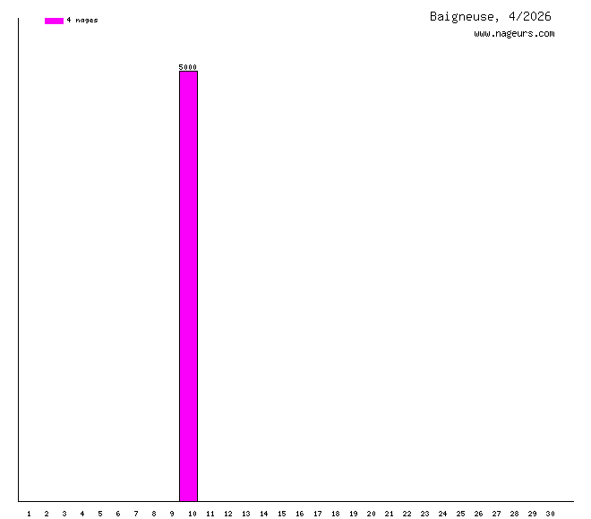 Ces 6 derniers mois, Baigneuse a nagé dans les piscines suivantes : Piscine Port Marchand (Toulon) (14 km), Piscine municipale de Argelès-sur-Mer (2 km).
