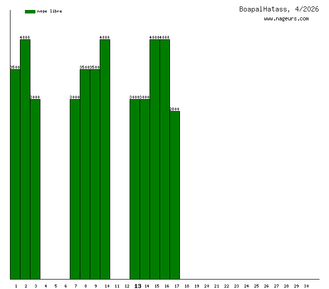 Avril 2026 : (41300 m)Mars 2026 : (54500 m)