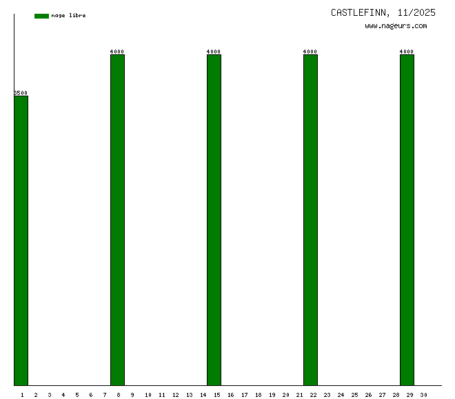 Ces 6 derniers mois, CASTLEFINN a nagé dans les piscines suivantes : Piscine l'Inox (Olivet) (79.5 km).