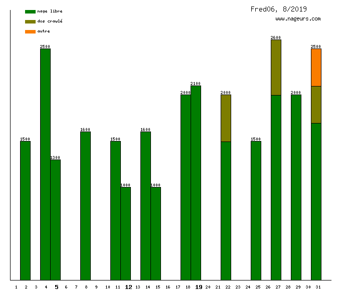 Ces 6 derniers mois, Fred06 a nagé dans les piscines suivantes : Piscine Jean Bouin (Nice) (30.7 km), Stade Nautique piscine municipale Antibes (22.5 km), Piscine de l'Ariane (Nice) (8.1 km), Piscine Piol (Nice) (7 km), Piscine Saint François (Nice) (2.2 km).