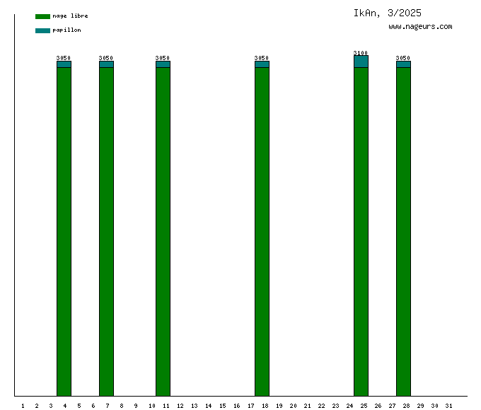 Ces 6 derniers mois, IkAn a nagé dans les piscines suivantes : Piscine Catherine Lagatu ex Parmentier (Paris) (12.2 km).