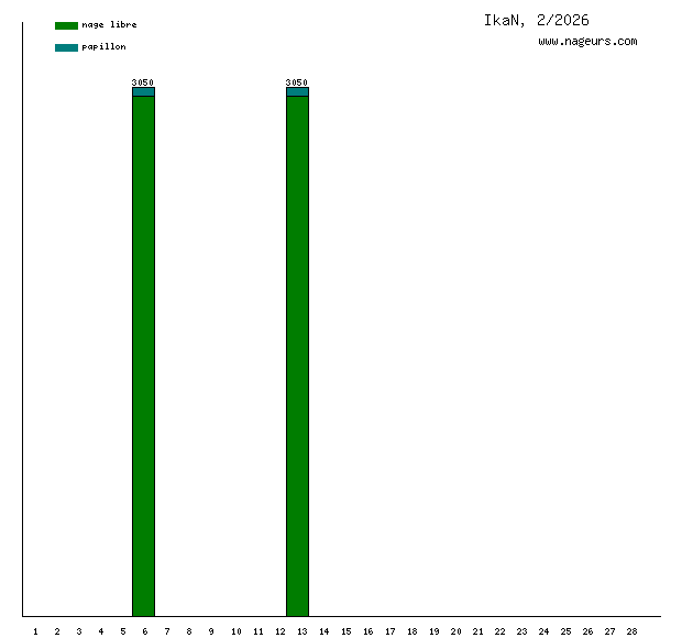 Ces 6 derniers mois, IkaN a nagé dans les piscines suivantes : Piscine Catherine Lagatu ex Parmentier (Paris) (12.2 km), Piscine Cour des Lions (Paris) (2.5 km).