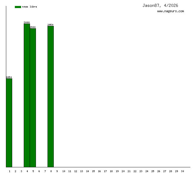 Ces 6 derniers mois, Jason87 a nagé dans les piscines suivantes : Piscine Bonneveine (Marseille) (24.3 km), Piscine Camping Les Hautes Prairies (Lourmarin) (5.9 km), La Maison du Castellet (Le Castellet) (4.6 km), Piscine Desautel (Marseille) (4.5 km), Piscine Port Marchand (Toulon) (1.5 km).