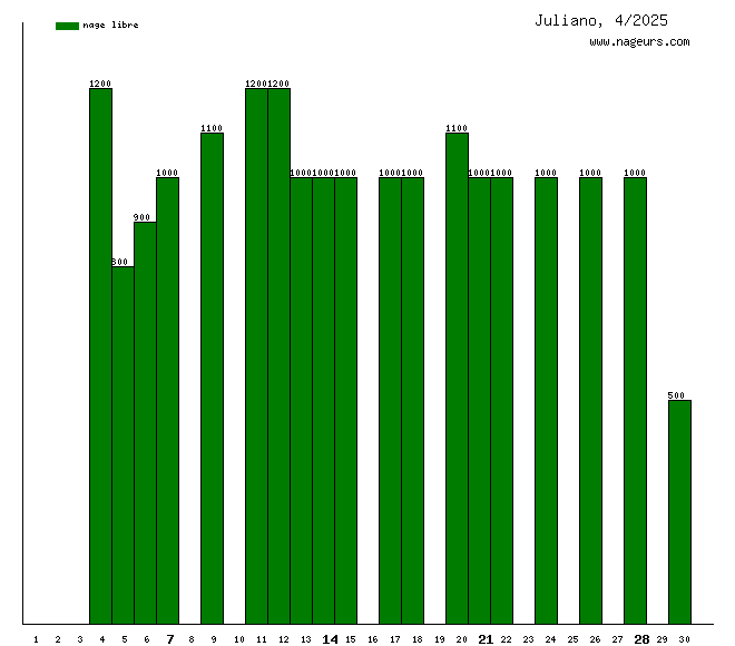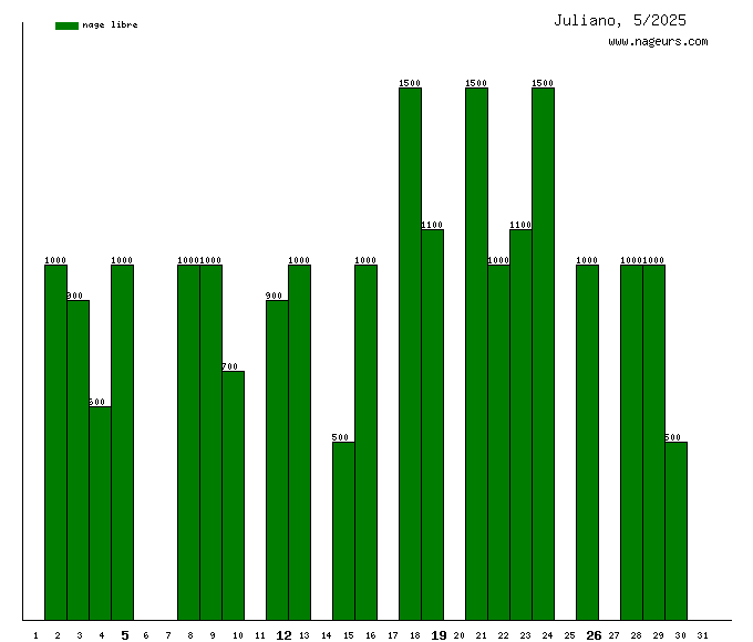 Ces 6 derniers mois, Juliano a nagé dans les piscines suivantes : Aquastade Val d'Essonne (Mennecy) (59.3 km).
