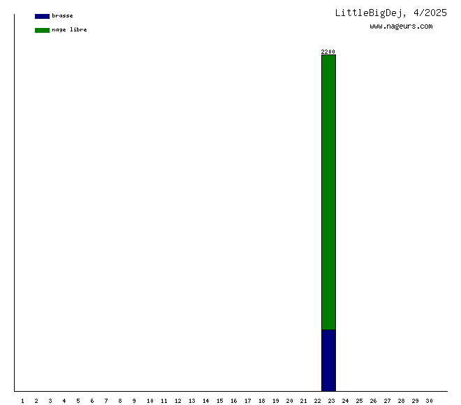Ces 6 derniers mois, LittleBigDej a nagé dans les piscines suivantes : Piscine René et André Mourlon (Paris) (74 km), Piscine Blomet (Paris) (13.5 km), Piscine municipale de Dinard (2.4 km).