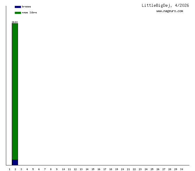 Ces 6 derniers mois, LittleBigDej a nagé dans les piscines suivantes : Piscine René et André Mourlon (Paris) (61.5 km), Piscine Blomet (Paris) (15.8 km), Piscine Jacqueline Auriol (Paris) (2.2 km).