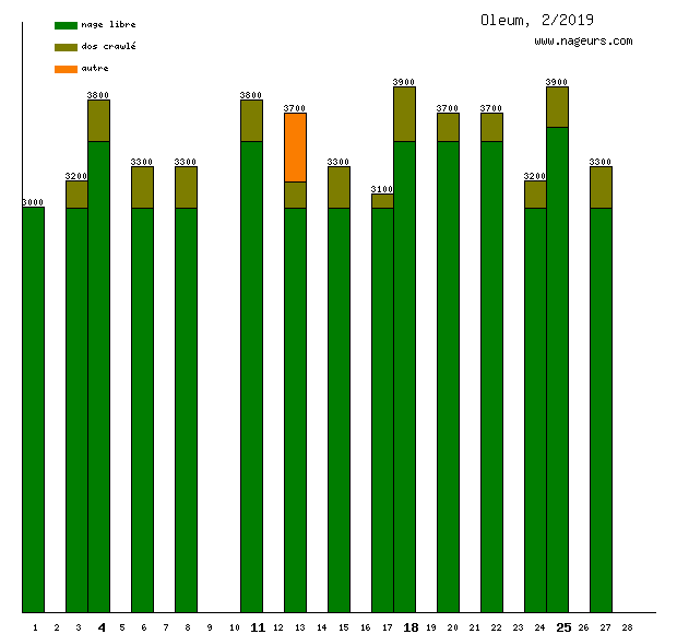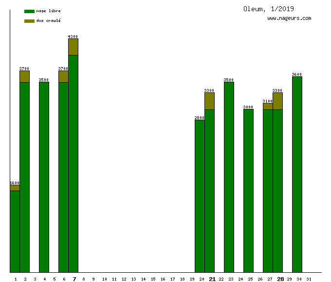 - • 3800 mètres le mercredi 10 octobre (de 19h14 à 20h40) à Piscine du Palais des sports de l'Île de Puteaux - pas de commentaire