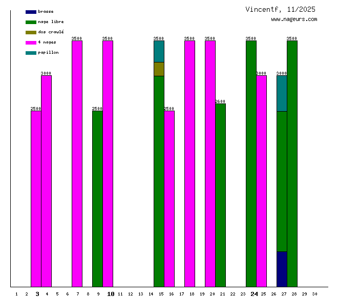 Décembre 2025 : (7000 m)Novembre 2025 : (43600 m)