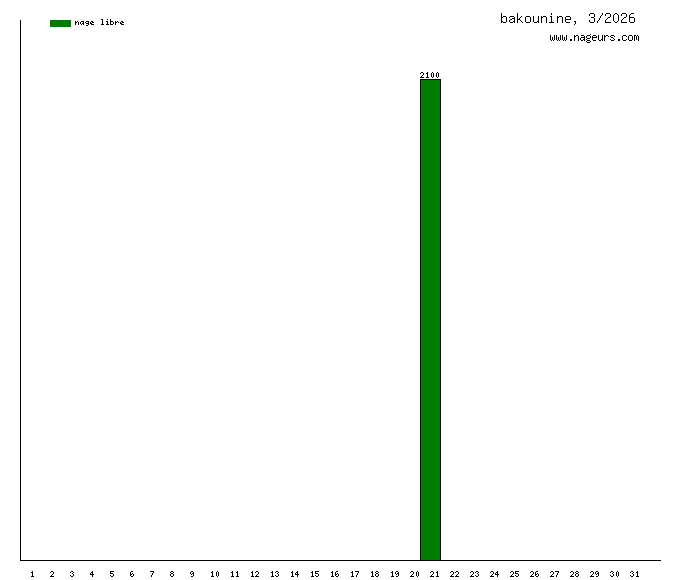Ces 6 derniers mois, bakounine a nagé dans les piscines suivantes : Centre Nautique des Trois Rivières (Cloyes sur le Loir) (36.7 km).