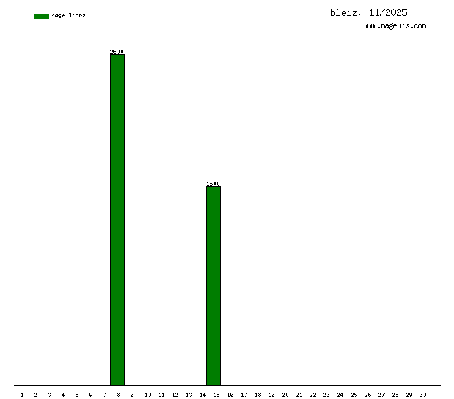 Ces 6 derniers mois, bleiz a nagé dans les piscines suivantes : Piscine de Combourg (17.9 km).