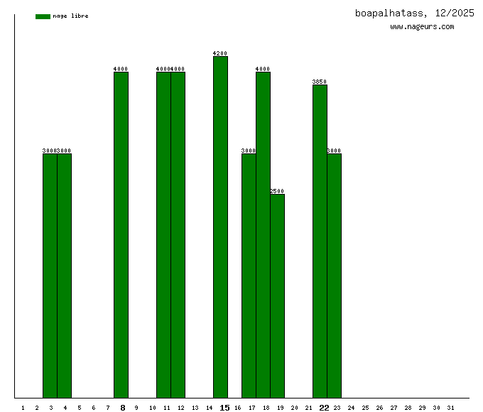 Janvier 2026 : (11500 m)Décembre 2025 : (38550 m)