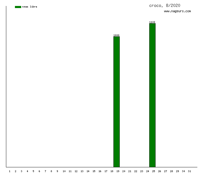 Ces 6 derniers mois, croco a nagé dans les piscines suivantes : Centre Aquatique Les Nymphéas (Noisy-le-Grand) (10 km).