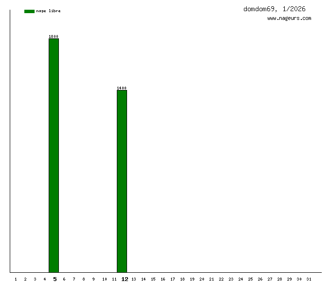 Ces 6 derniers mois, domdom69 a nagé dans les piscines suivantes : Piscine couverte de Carpentras (25.5 km), Piscine municipale de Bédoin (7.3 km), Piscine des Canetons (Marignane) (3.4 km), LOU Piscine (Lyon) (1.5 km), Ancienne piscine de Gerland (définitivement fermée) (Lyon) (1.4 km), Piscine municipale Yves Blanc (Aix-en-Provence) (1.2 km), Piscine municipale de Céreste (600m).