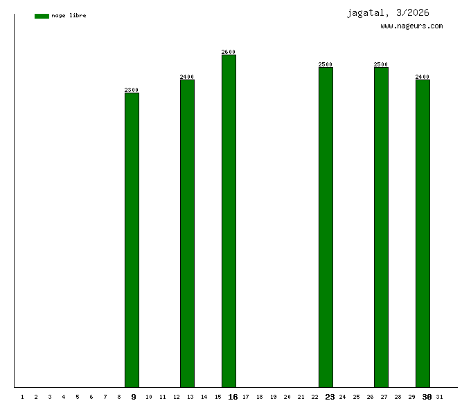 Mars 2026 : (14700 m)Février 2026 : (11800 m)