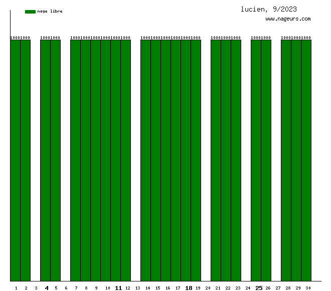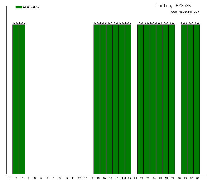 Ces 6 derniers mois, lucien a nagé dans les piscines suivantes : Piscine Paul Valeyre (Paris) (134.8 km), Piscine Georges Drigny (Paris) (1000m).