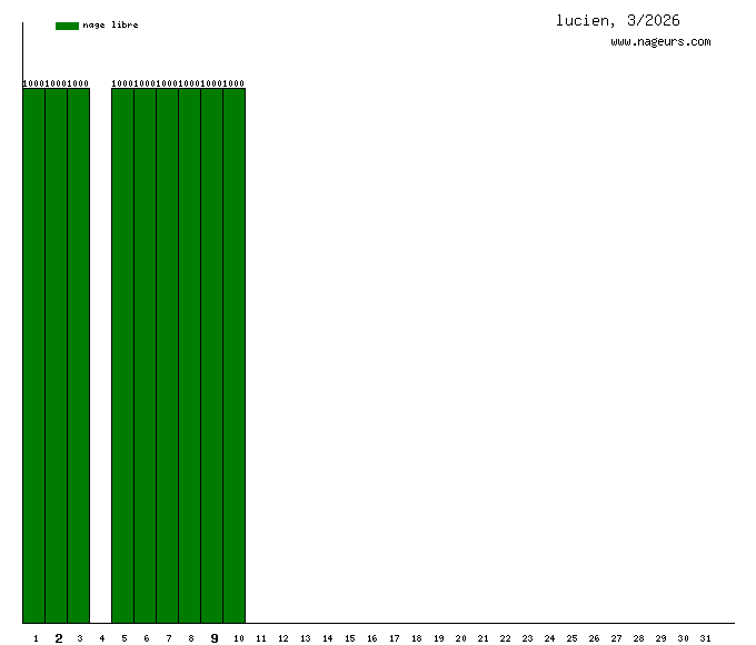 Ces 6 derniers mois, lucien a nagé dans les piscines suivantes : Piscine Paul Valeyre (Paris) (108.8 km), Piscine Georges Drigny (Paris) (3 km).