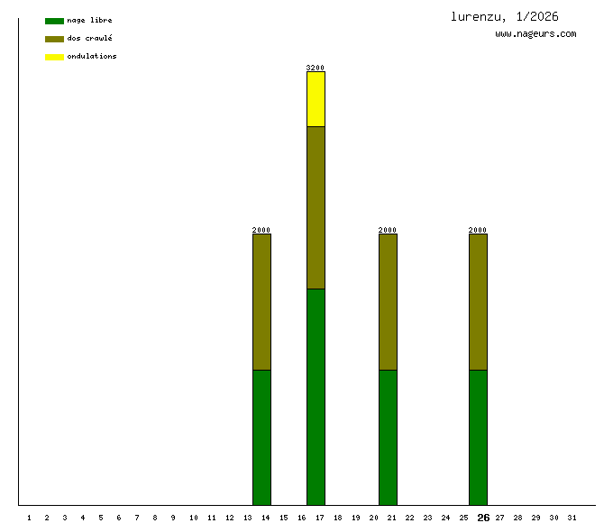 Ces 6 derniers mois, lurenzu a nagé dans les piscines suivantes : Piscine Roger Le Gall (Paris) (54 km), Piscine de l'Odyssée (Chartres) (3.2 km).