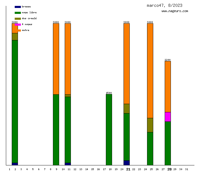 Ces 6 derniers mois, marco47 a nagé dans les piscines suivantes : Aquaval complexe aquatique du val de garonne (Marmande) (38 km).