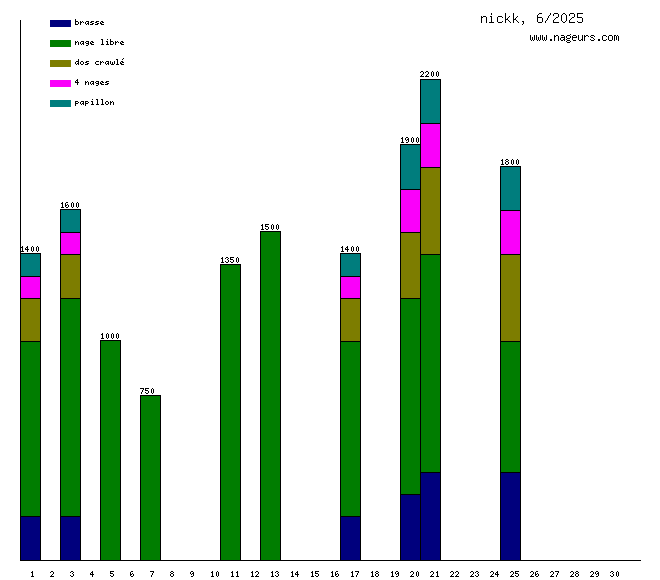 Ces 6 derniers mois, nickk a nagé dans les piscines suivantes : Clubsportive Zuidas (Gustav Mahlerlaan 24 1082 MC Amsterdam, Hollande) (58.7 km), PISCINE PRIVEE (500m).