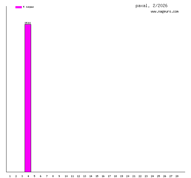 Ces 6 derniers mois, paxal a nagé dans les piscines suivantes : Piscine municipale de Dinard (42.5 km).