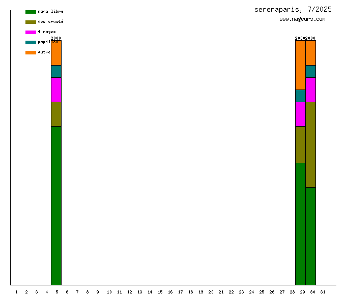 Ces 6 derniers mois, serenaparis a nagé dans les piscines suivantes : Piscine Cour des Lions (Paris) (21.5 km), Piscine de Pontoise (Paris) (1.6 km).