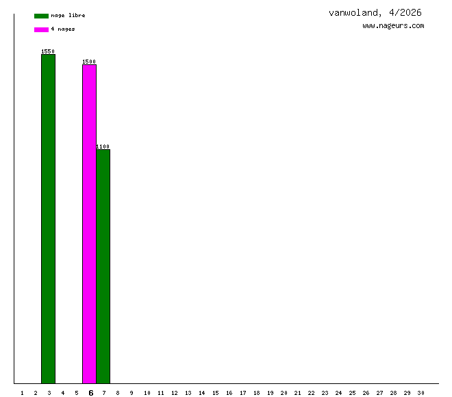 Ces 6 derniers mois, vanwoland a nagé dans les piscines suivantes : Piscine Yvonne Godard (Paris) (1.5 km).