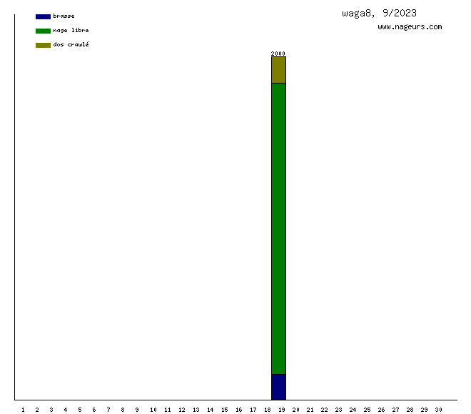 Ces 6 derniers mois, waga8 a nagé dans les piscines suivantes : Piscine Jacqueline Auriol (Paris) (12 km), Stade nautique Rainier III (Monaco, Monaco) (10 km), Piscine Marjorie-Gestring (ex Champerret) (Paris) (6 km).