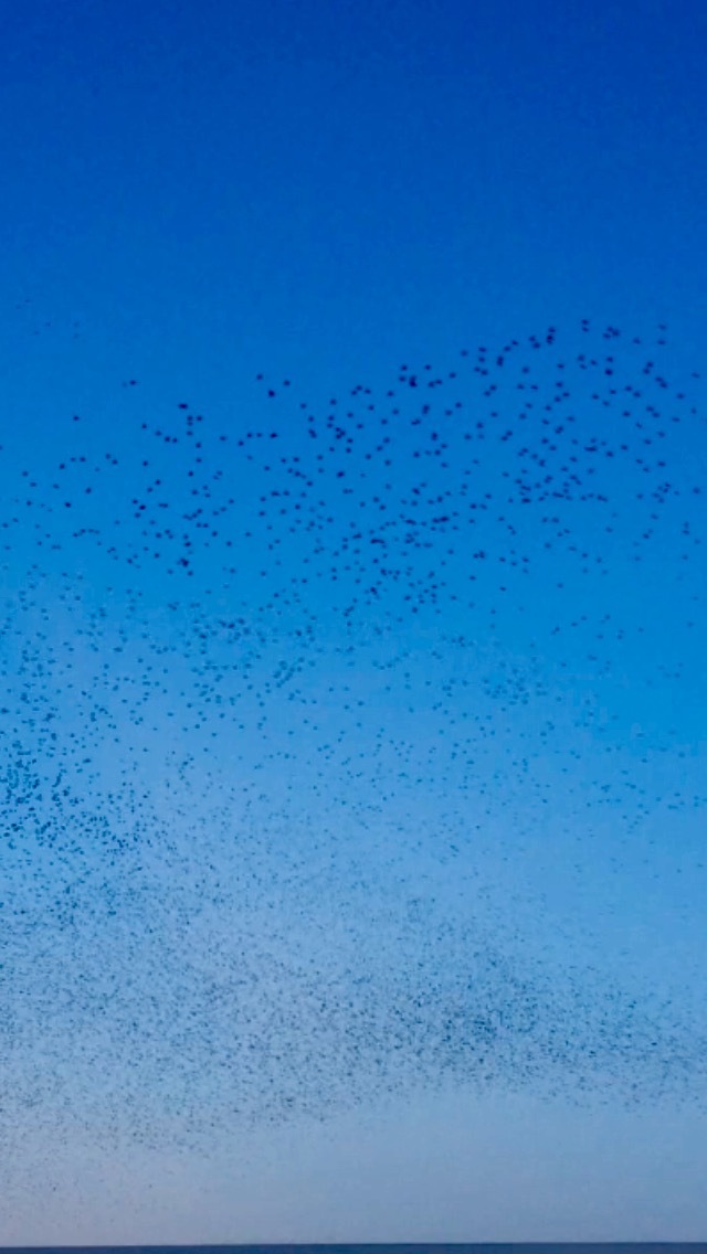 Lorsque je suis sorti de la gare j' ai eu le droit à un spectacle magnifique ! Des oiseaux comme s' il en pleuvait. Des milliers d' étourneaux