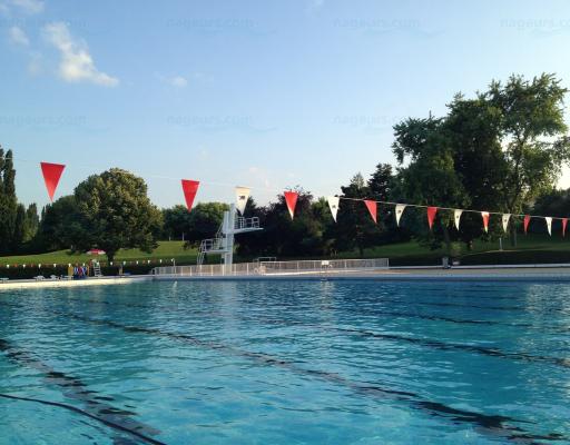 Bassins : 50 x 21 m, 21 x 15 et 12x 11 m, salarium, fosse à plongeon (3,90m de profondeur, plongeoirs de 1, 3, et 5 mètres)