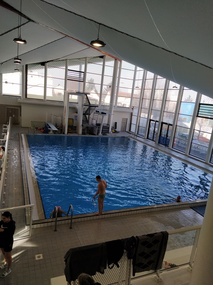 (afficher la suite du commentaire) A signaler 3 mémères palmeuses qui prennent toute la largeur de la ligne en pappotant de front, et qui hurlent pour éviter la collision quand tu arrives trop vite sur elles en dos ... lol, ben j'ai compris, c'est LEUR ligne, alors je suis allé à coté... Me frotter au brasseur à plaquettes qui démarre juste avant toi quand tu arrives lancé, et qui lui aussi tient toute la largeur et donc très difficile à dépasser. Petit salut également aux deux bons nageurs, jeunes (un gars, une fille), qui papotent également au T en n'en ayant que faire de celui qui arrive lancé pour sa culbute.