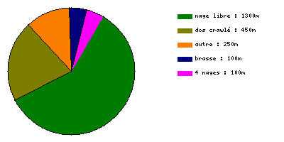 Club : 2 x 200 libre (1 crawl 1 dos) ; 6 x 100 (1 dos, 1 bat., 1 brasse, 1 4N, 1 crawl, 1 libre (crawl)) ; 6 x 50 Jambes bat ou libre ; 3 x 200 crawl (1 rattrapé, 1 amplitude, 1 vite) ; 100 souple libre (crawl) ; enfin il devait y avoir un 400 PB respiration 5 temps, mais je n'ai eu le temps de faire que 200 m.