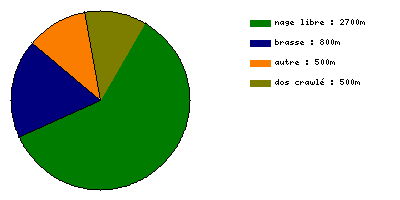• de 17h17 à 18h29, oleum a nagé 3000 mètres : La natation donne faim, sur les douze coups de minuit je me suis transformé en ogre et descendu mon frigo non repu de mon diner suivi d'une bonne douche chaude avant d'aller rejoindre les bras de Morphée (est ce qu'elle nageait Morphée...?!).