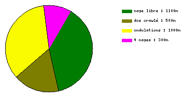 • de 16h30 à 17h45, shei a nagé 3250 mètres : Le soleil était occulté par la moitié du toit qui ne s'ouvre pas Une horde de gamins venu passer une sorte de brevet de natation (?} occupait la deuxième moitié; ça grouillait de partout, mais j'ai trouvé ça marrant ! Une ligne crawl à un moment sans un chat (alleluia!} puis des nageurs endurants et réguliers mais à vitesse variable Les nageurs étaient ultra courtois. Bref, j'aime !