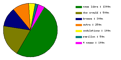 Encore pas un bon souffle ni endurance..du coup j'arrive à peine aux 1000m non stop au debut...mais contente de pratiquer de plus en plus le 3T ainsi que renforcer la respiration à gauche et martiriser ainsi le bras gauche à mort où je suis un peu obsedée de vaincre mon asymétrie de la nage...dommage que les chronos ne m'accompagne pas...