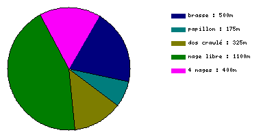 brasse : 14 minutes; 500 m;10 longueur; 30 stroke; 170 speed;58 eff